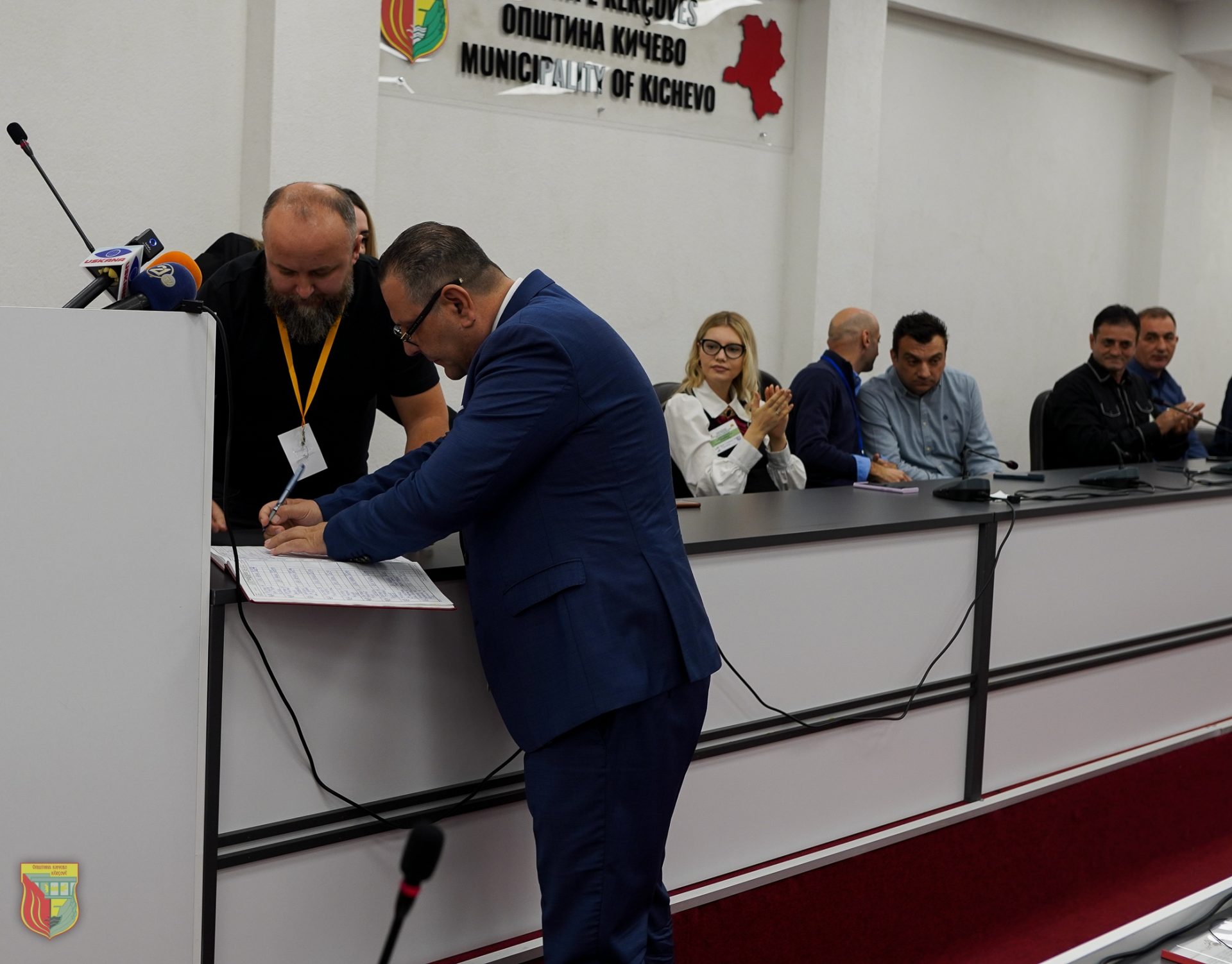 Советниците исто така ги зедоа своите уверенија за четиригодишниот мандат, а примопредавање во една хармонична атмосфера му оддаде и досегашниот градоначалник Фатмир Дехари кој му посака успех во работата и многу здравје каде му врачи еден скромен поклон од град Кичево, изгравиран со честитка за успешна работа.
