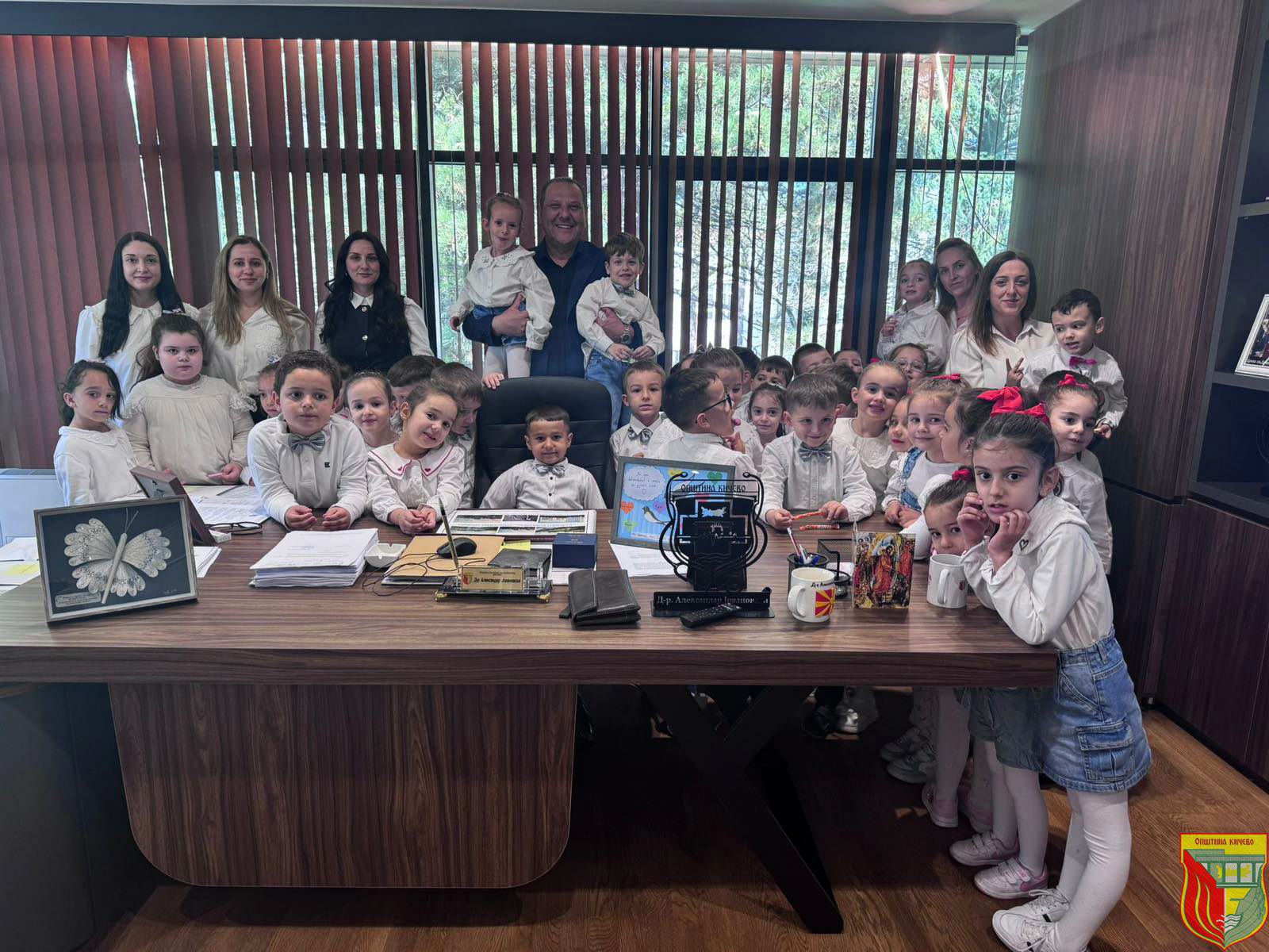Денес, просториите на Општината беа исполнети со детска радост, искрени насмевки и прекрасна енергија, благодарение на посетата на дечињата од градинката „Олга Мицеска“ , кои беа срдечно пречекани од градоначалникот.