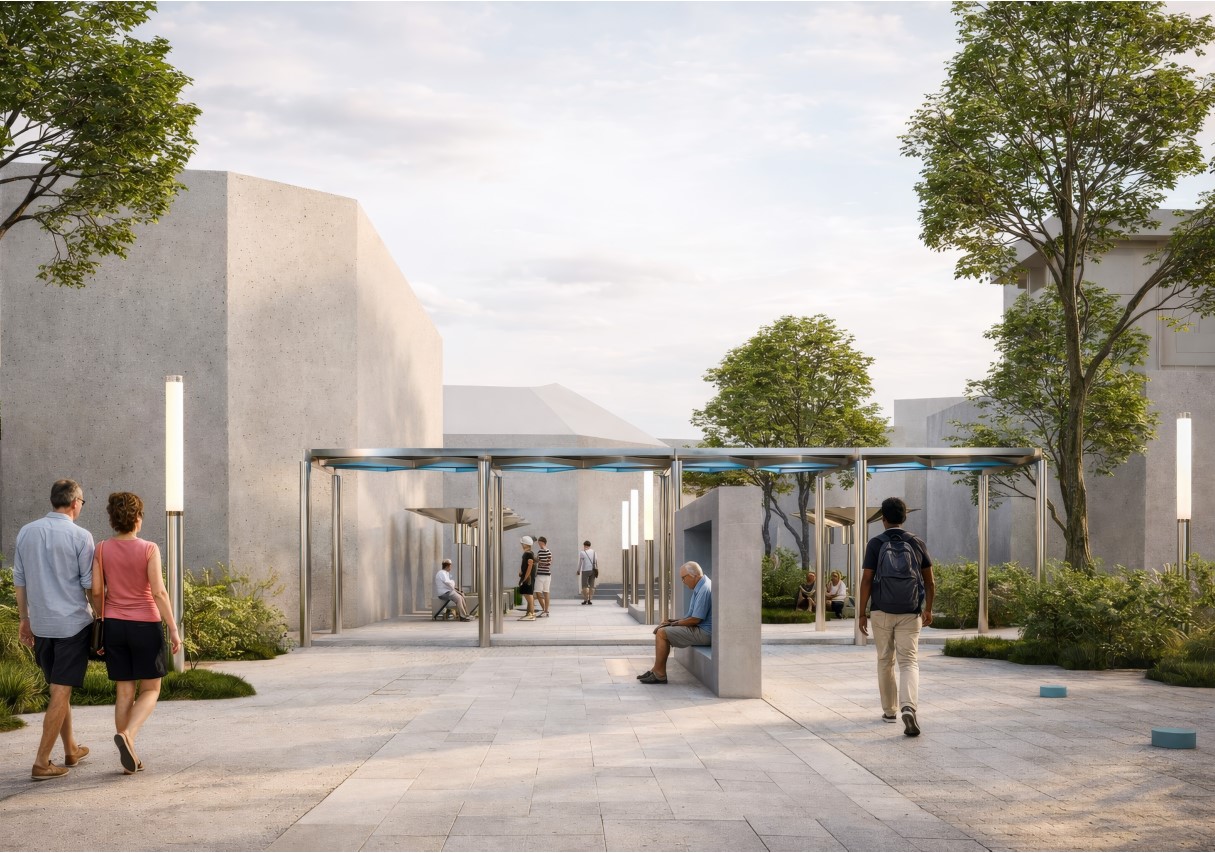 Комисијата за избор на идејно решение го препозна квалитетот на ова решение преку неговата способност да создаде простор што е многу повеќе од функционален плоштад. Преку внимателно изработени форми, сеопфатен пристап и богата материјализација, дизајнот создава динамичен и сензуален амбиент што поканува на интеракција и престој. Просторот се перцепира како „урбана соба“, место каде што коегзистираат различни функции, а земајќи го предвид слоевитоста на просторот, тој нуди повеќе можности и видови на употреба, од секојдневни комерцијални активности до социјални собири и културни настани. Без доминација на претенциозни или банални идеи, решението внимателно ги поврзува клучните просторни врски и создава хармоничен простор кој зрачи со смиреност, топлина и виталност. Во овој контекст, проектот претставува урбанистичко-архитектонска интервенција во централното градско јадро, насочена кон интеграција и унапредување на јавниот простор преку поврзување на три сегменти – плоштадите „Ослободување“, „Обединување“ и „Осознавање“ во единствен просторен систем.